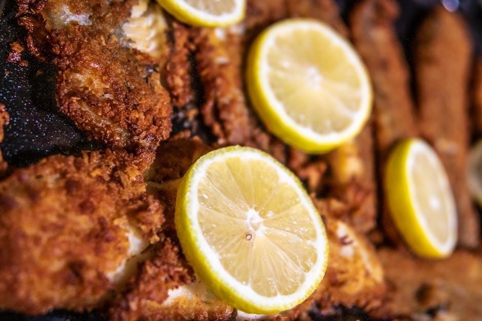 The air fryer adaptation achieves a delightful crispy texture without deep frying․ Instructions cover proper shrimp preparation, marinade timing, and optimal air fryer settings for perfectly cooked shrimp․ The PDF provides guidance on preventing overcooking, resulting in tender, juicy shrimp with a satisfying crunch․